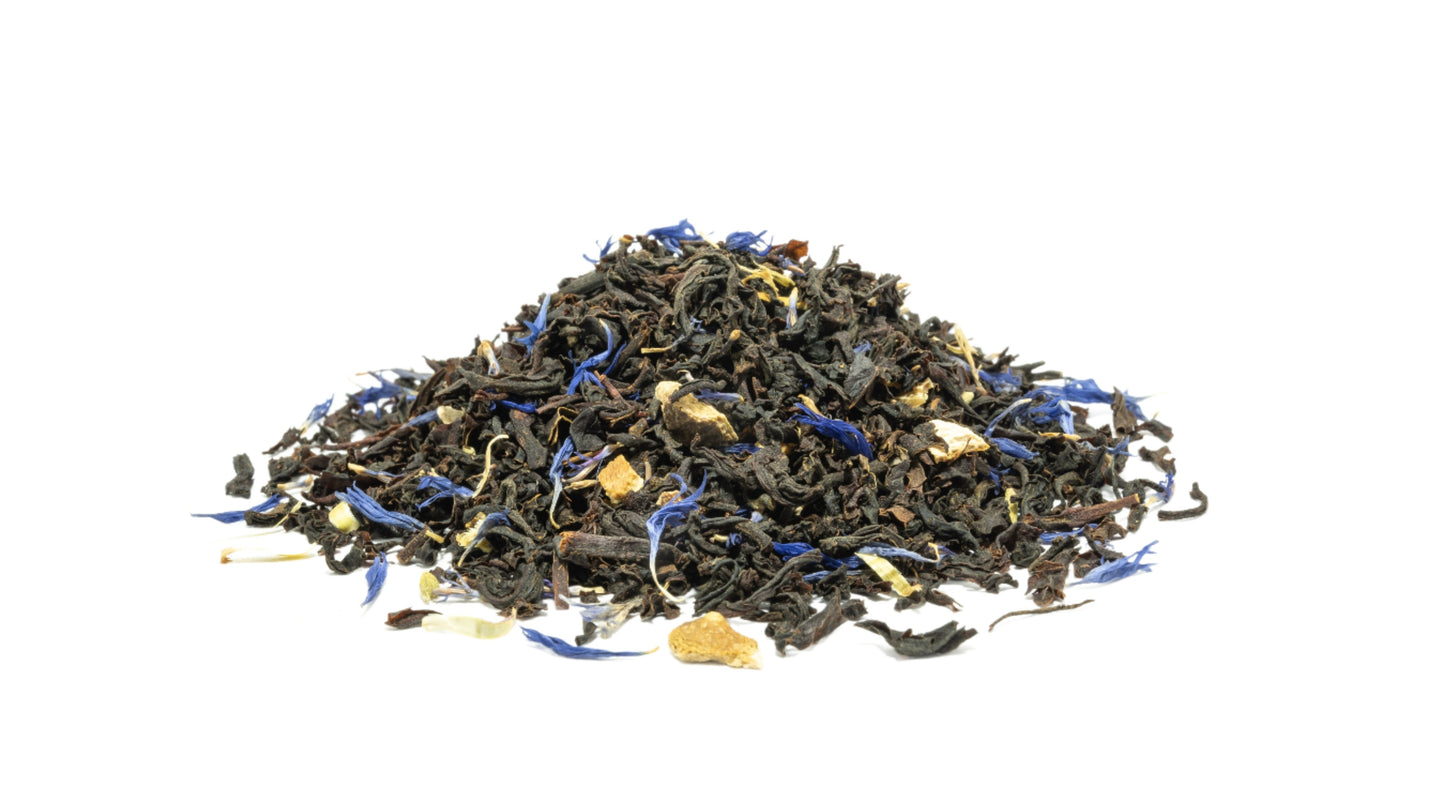 Madame Grey Tea is a citrusy variation of the famous Earl Grey, dating back to England in the 1820’s. Jokingly known as the “drug with bergamot” due to its distinctly citrus fragrance, this brew is a timeless classic.