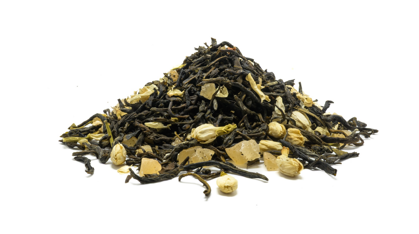 Delicately balanced and beautifully aromatic, our Jasmine & White Peach Green Tea is a truly luxurious infusion. Blended with jasmine blossoms, sun-ripened white peach pieces, and smooth green tea leaves, the result is a golden-hued liquor with a naturally sweet flavour and a clean, slightly dry finish.